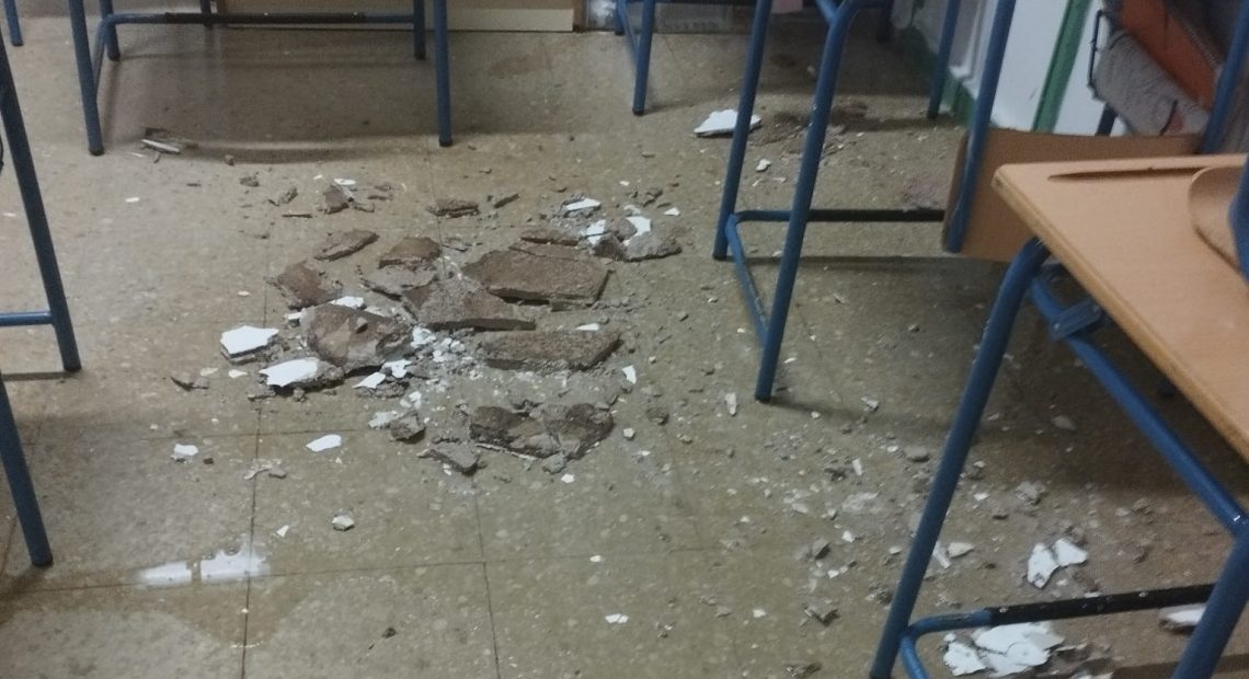 El techo de un aula del colegio Miguel de Cervantes se desploma por la lluvia
