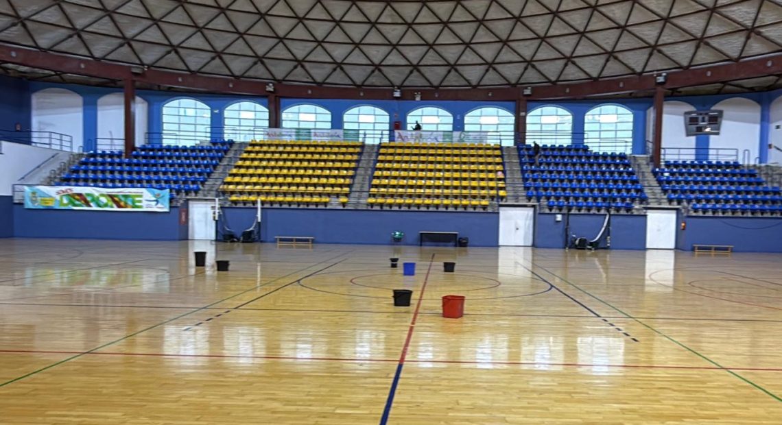 El portavoz municipal del PSOE, Sergio Gómez Ramos, denuncia el estado de abandono del pabellón polideportivo Alcalde Fernando Martínez Ramos, cuyas goteras impiden su uso cuando llueve, y critica la falta de inversión estructural del equipo de gobierno del PP.
