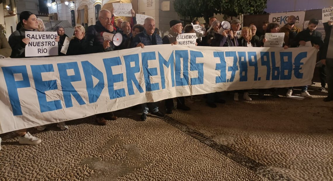 Vecinos y miembros de la plataforma Amigos del Genil han protestado ante el Palacio de Benamejí en los momentos previos a la celebración del pleno de la corporación, exigiendo el inicio inmediato de las obras del proyecto FlubioGenil, ante el riesgo de perder una subvención europea de cerca de cuatro millones de euros.
