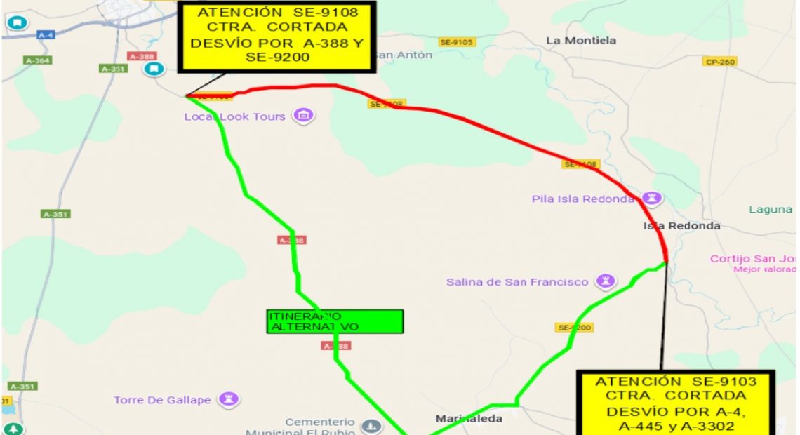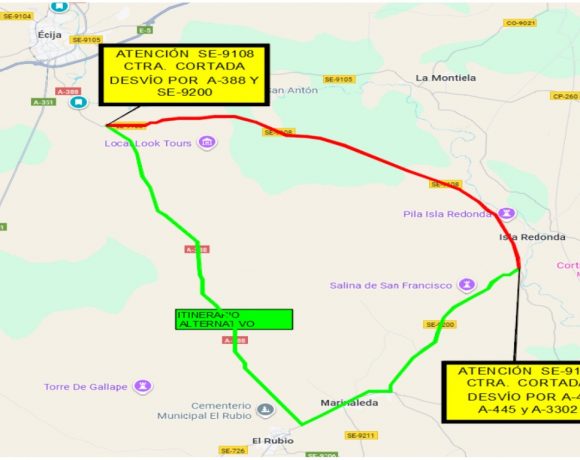 La Diputación de Sevilla ha ampliado hasta el 29 de enero de 2026 el corte total de la carretera provincial SE-9108, que une Écija con Herrera, para ejecutar obras de mejora del drenaje. La vía permanece cerrada desde octubre, con desvíos alternativos señalizados.