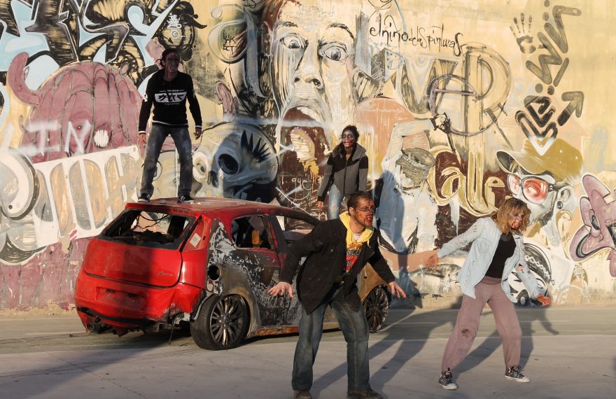 Zombies, sangre y mucha acción han abierto el Festival Nacional de Cortometrajes de Écija, Cinéresis 2017, con una exhibición de especialistas de cine en el recinto ferial de La Alcarrachela.