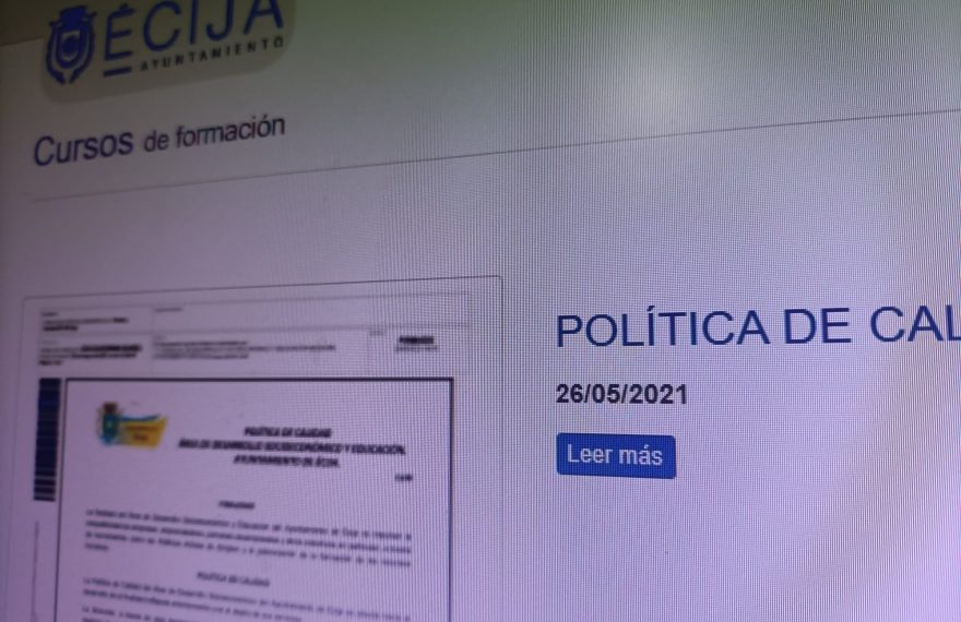 El Grupo municipal de Izquierda Unida y Podemos por Écija-Con Andalucía ha exigido al Ayuntamiento de Écija la “actualización inmediata” del enlace dedicado a los ‘Cursos de Formación’ en la página web oficial municipal, que no se actualiza desde el año 2021.