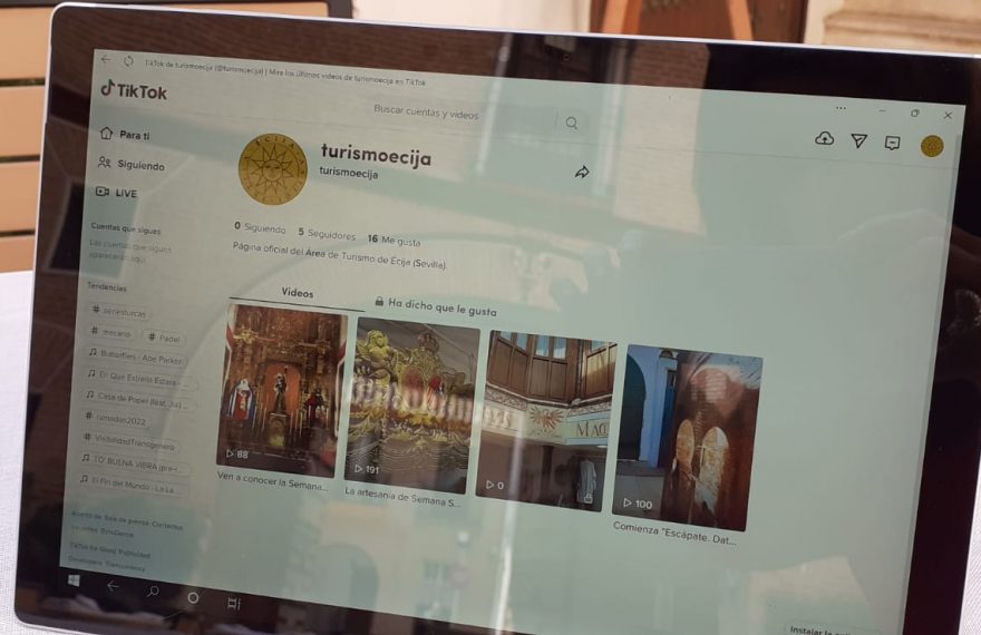 Turismo de Écija suma un perfil de Tik Tok a sus redes sociales oficiales. Según la Concejalía de Turismo, con su entrada en esta red social, el Ayuntamiento de Écija pretende “llegar a un perfil muy determinado de usuario, con edades comprendidas entre los 10 y los 29 años”.