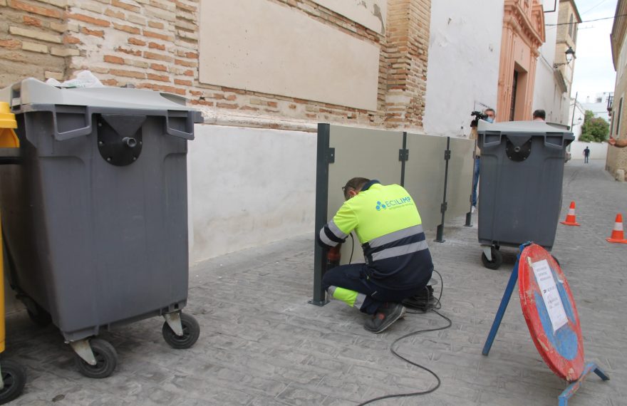En siete puntos del casco histórico de Écija se van a cubrir los contenedores de basura con vinilos que replican el entorno en que se ubican, para ocultarlos a la vista y evitar así el impacto visual de estos elementos en el entorno patrimonial y turístico