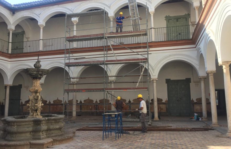 El Ayuntamiento de Écija calcula finalizar la obra de rehabilitación del patio central del Palacio de Peñaflor a principios de noviembre. Hoy se ha aceptado en junta de gobierno la tercera certificación de esta intervención, que comenzó en julio.