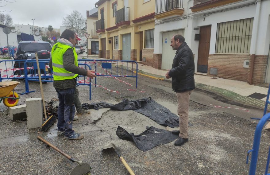 Operarios del Ayuntamiento de Écija han llevado a cabo una intervención de urgencia para reparar la calzada en la calle Torres Quevedo tras detectarse un socavón en la vía rodada que ha provocado el hundimiento de parte del pavimento.