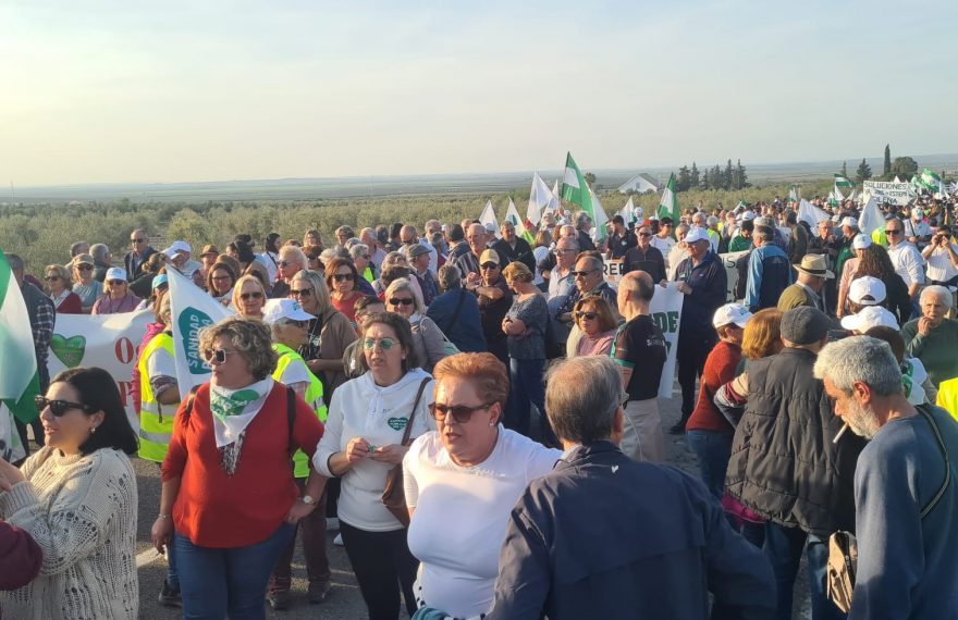 Unas 3.000 personas, según datos de Marea Blanca, se han movilizado este jueves en la carretera A-351, que une Osuna con Écija, para reclamar mejoras en la sanidad pública del área sanitaria de Osuna.