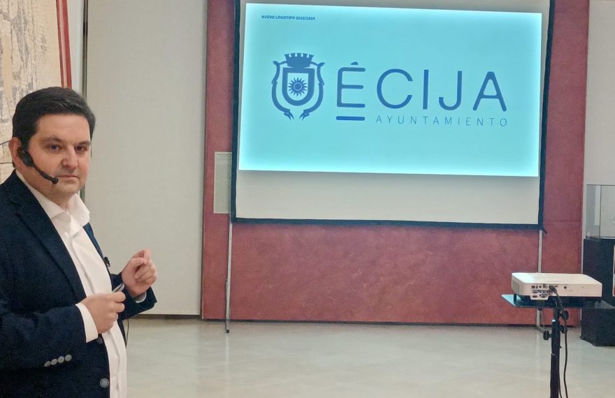 El Gobierno local de Écija (PP) ha cambiado la imagen corporativa del Ayuntamiento de Écija y ha presentado una nueva identidad visual para el consistorio, “limpia, sencilla, utilizando el azul de la bandera y mirando al futuro y a las nuevas maneras de comunicarse”, según el propio gobierno municipal.
