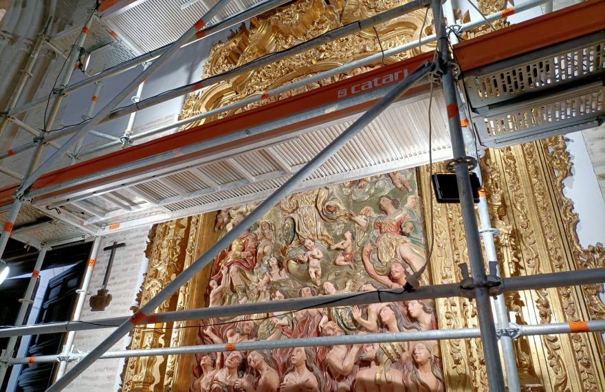 El consejero de Turismo, Cultura y Deporte, Arturo Bernal, ha visitado el altar de Ánimas Benditas, en la parroquia de Santiago el Mayor de Écija, uno de los bienes que están siendo intervenidos con las ayudas a la restauración y conservación de los bienes del patrimonio histórico de carácter religioso en la provincia de Sevilla.