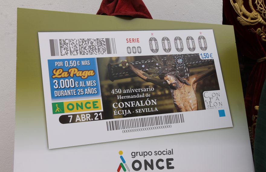 El cupón de la ONCE del próximo 7 de abril lleva la imagen del Santísimo Cristo del Confalón, titular de la hermandad ecijana de La Victoria, que cumple este año su 450 aniversario, una efeméride a la que se ha sumado la ONCE.