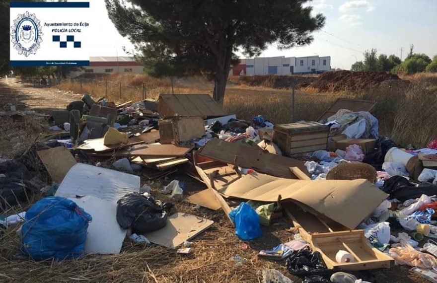 La Policía Local de Écija ha identificado al responsable del vertido ilegal de enseres en una zona verde de la ciudad, detectado hace más de una semana, y que tendrá que pagar una multa y el coste de reponer el daño causado.