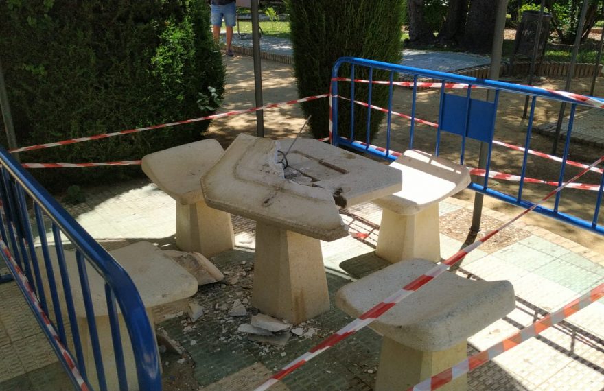 La Policía local de Écija investiga actos vandálicos en el parque Vélez de Guevara, donde han sido destrozadas algunas de las mesas de este céntrico parque, muy frecuentado por personas de la tercera edad.