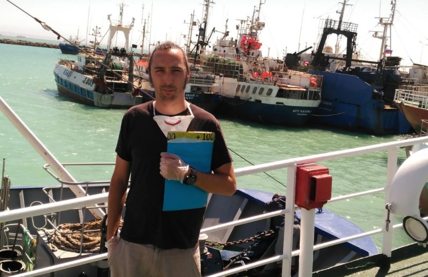 A Adrián Martínez Osuna, un ecijano de 33 años, la pandemia del coronavirus Covid-19 le ha pillado en Namibia. Para ser más exactos, la crisis sanitaria le pilló navegando, embarcado como observador científico en un pesquero que ahora está atracado en el puerto africano de Walvis Bay.