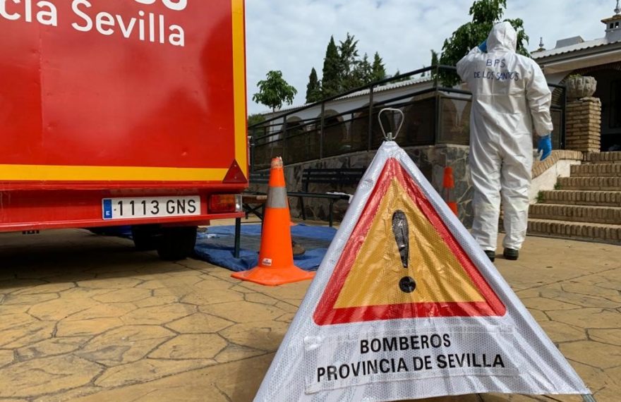 Bomberos del Sistema Provincial de Sevilla realizaron este jueves labores de desinfección en la residencia del organismo municipal de atención a personas con discapacidad de Écija, Prodis, además de en otras residencias de mayores de la provincia.