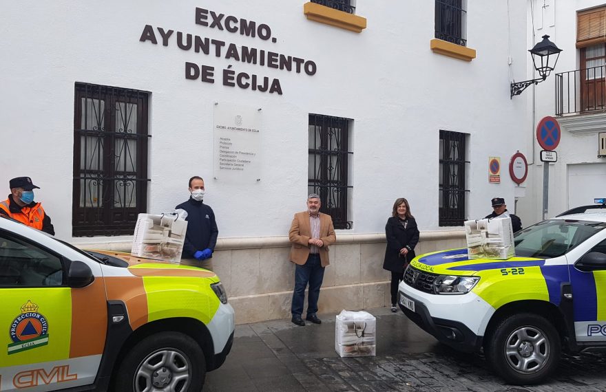 El Ayuntamiento de Écija ha recibido hoy equipos de protección individual (EPI) para personal de seguridad y sanitarios, donado por empresas y comerciantes de la ciudad. Es una donación para hacer frente a la pandemia del coronavirus Covid-19.