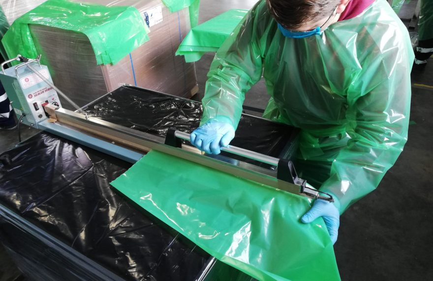Los trabajadores de una empresa ecijana de transformación y comercialización de plásticos van a donar a lo largo de esta semana un total de 10.000 batas impermeables de protección frente al coronavirus a servicios sanitarios. Ya han entregado hasta el momento 1.500.