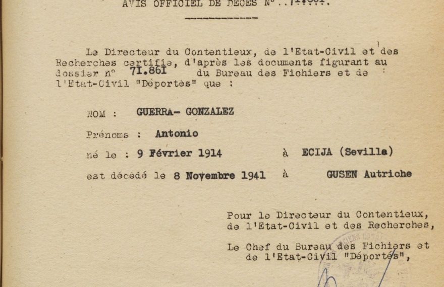 El Registro Civil Central ha publicado este viernes en el Boletín Oficial del Estado (BOE) los nombres de 4.427 españoles que murieron en los campos de concentración nazis con la complicidad del régimen de Franco. Entre ellos está el del ecijano Antonio Guerra González.