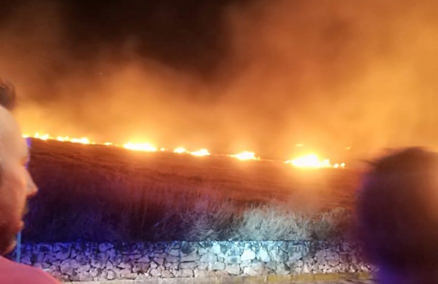 Efectivos del parque de bomberos de Écija han empleado cerca de dos horas en controlar y sofocar un incendio declarado esta noche en la ladera por encima de la Plaza de la Zarzuela, en la zona del Balcón de Écija y el Camino de Campillo.