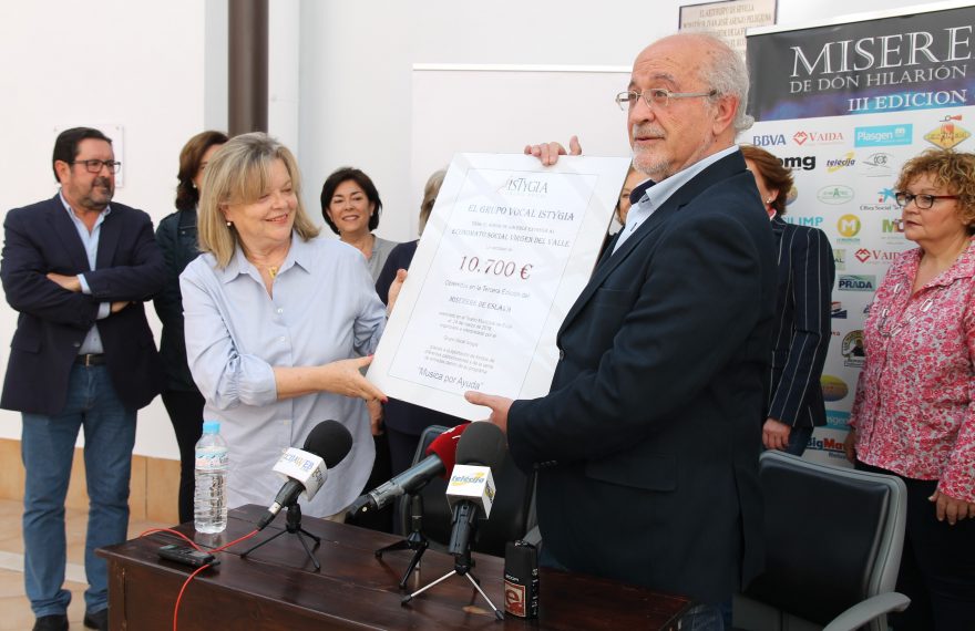 El Grupo Vocal Istygia ha hecho entrega al Economato Social Virgen del Valle de Écija de 10.700 euros. El dinero es el donativo conseguido con la organización e interpretación de la tercera edición del Miserere de Hilarión Eslava.