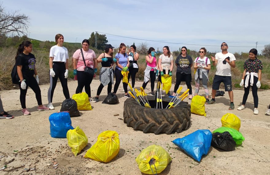 El activista Enrique Romero, más conocido como Quique Bolsitas, ha participado en una recogida de residuos en la corta del río Genil, acompañado por una treintena de escolares de secundaria del IES Luis Vélez de Guevara.