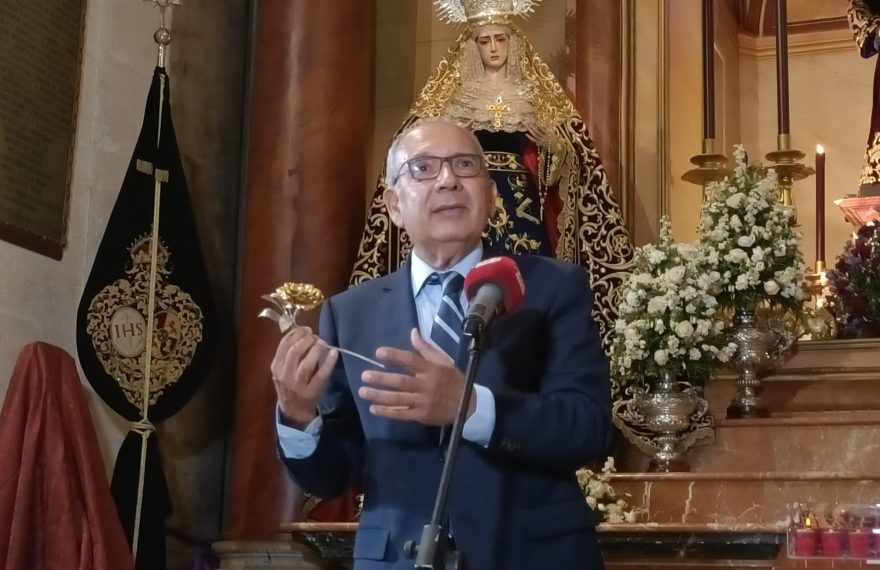 Desde este martes luce la Virgen de la Amargura, de la Hermandad del Silencio, la Rosa de Pasión, una insignia de carácter itinerante que reconoce la promoción de la donación de órganos que hace la corporación ecijana de Santa Cruz.