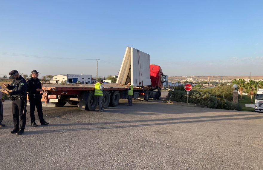 Un camión ha perdido esta mañana parte de su carga de placas de hormigón en uno de los accesos a Écija desde Córdoba, en la Avenida de la Guardia Civil, la antigua N-IV.
