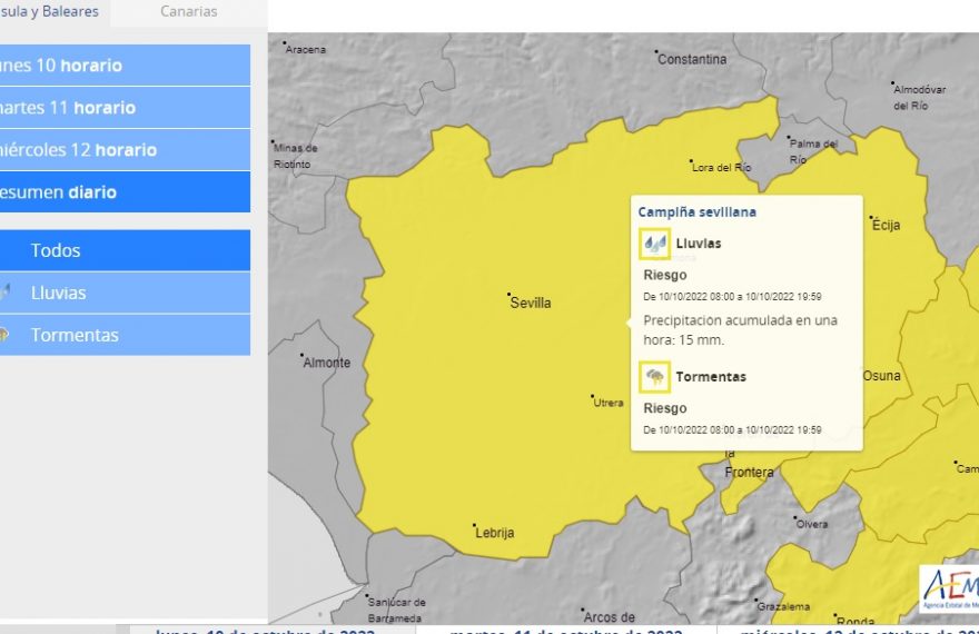 La Agencia Estatal de Meteorología (Aemet) ha activado el aviso amarillo por lluvias y por tormentas en la Campiña y la Sierra Sur de Sevilla para este lunes.