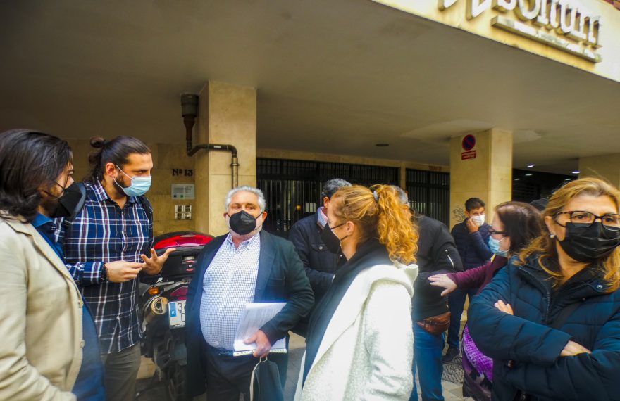 Las vecinas y vecinos de Écija afectados por la venta de sus viviendas sociales a un fondo de inversiones privado, se han concentrado a las puertas del bufete de abogados de este, y han entregado los escritos para iniciar la vía judicial para declarar nula la subasta de sus viviendas.