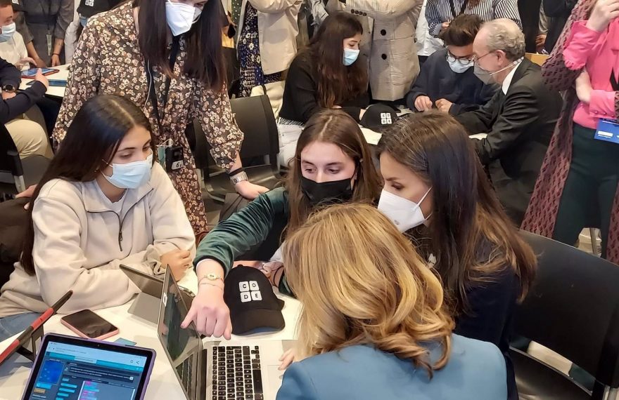 Un grupo de alumnas del colegio concertado SAFA de Écija han mostrado a los reyes don Felipe y doña Letizia el resultado de su taller de iniciación en programación Code.org durante la inauguración del ‘Tour del Talento’ que se ha celebrado en Málaga, organizado por la Fundación Princesa de Girona.