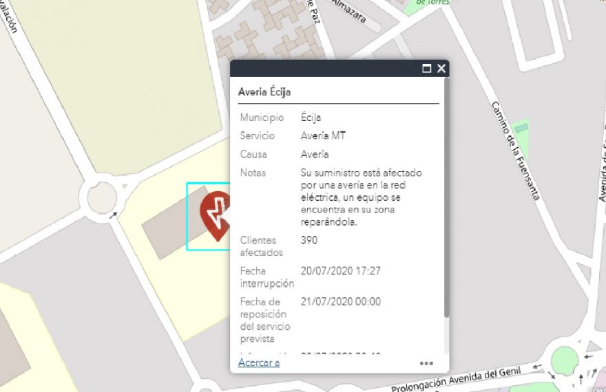 Un total de 390 vecinos y vecinas de varias barriadas de Écija han estado desde cerca de las 17.30 horas sin suministro eléctrico por una avería en la red eléctrica, según la compañía Endesa.